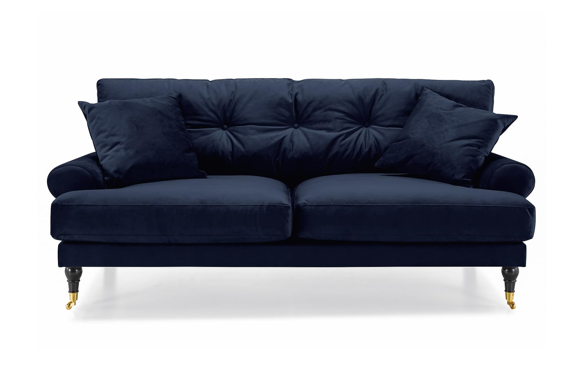 Andrew er en klassisk og smuk 2 personers sofa i velour med rigtig god komfort og en dejlig siddedybde. Sofaen har gennemtænkte materialevalg i form af smukt formede ben med messinghjul og store, bløde hynder. En rigtig indbydende og charmende sofa, som m