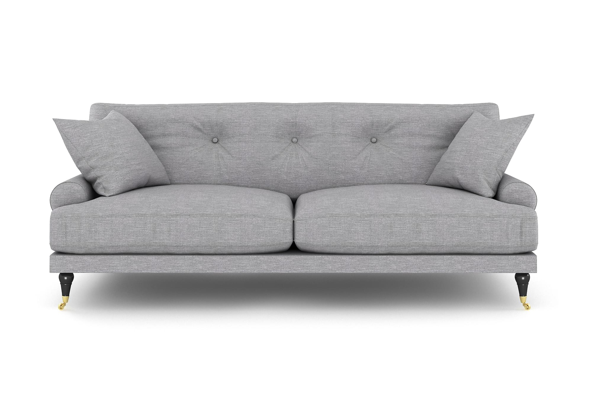 Andrew er en klassisk og smuk 2 personers sofa i lysegråt stof med rigtig god komfort og en dejlig siddedybde. Sofaen har gennemtænkte materialevalg i form af smukt formede ben med messinghjul og store, bløde hynder. En rigtig indbydende og charmende sofa