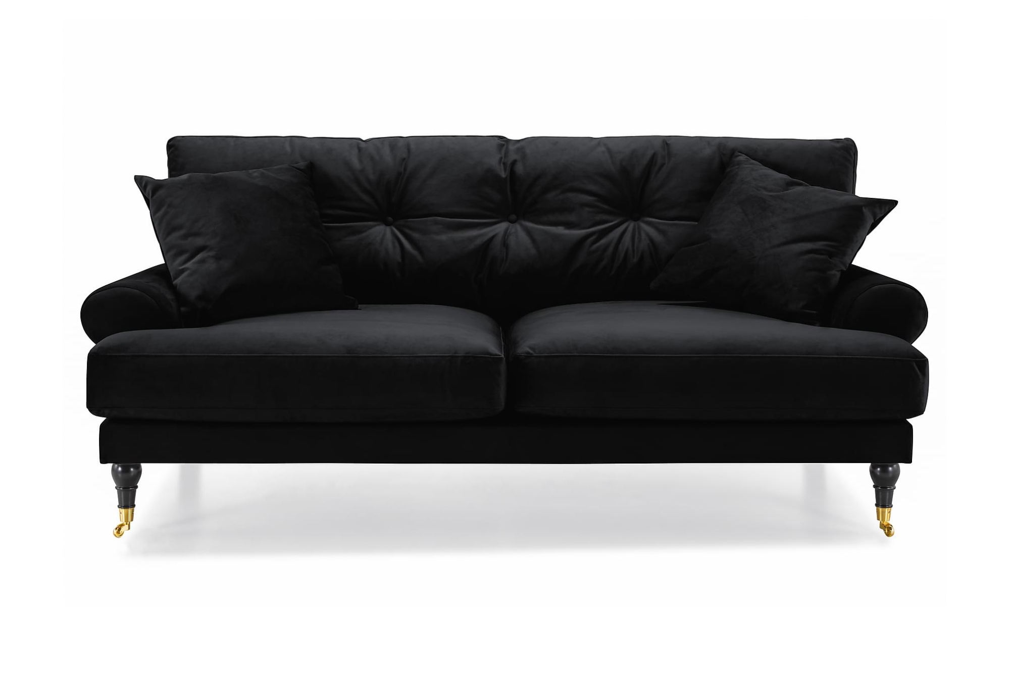Andrew er en klassisk og smuk 2 personers sofa i sort velour med rigtig god komfort og en dejlig siddedybde. Sofaen har gennemtænkte materialevalg i form af smukt formede ben og store, bløde hynder. En rigtig indbydende og charmende sofa, som med garanti