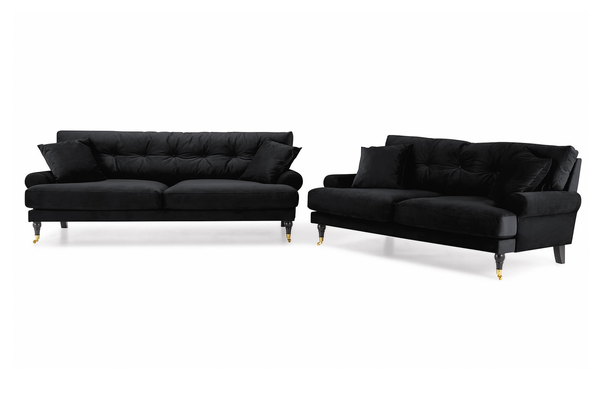 Andrew Sofagruppe (3 Pers Sofa Og 2 Pers Sofa), Sort Velour