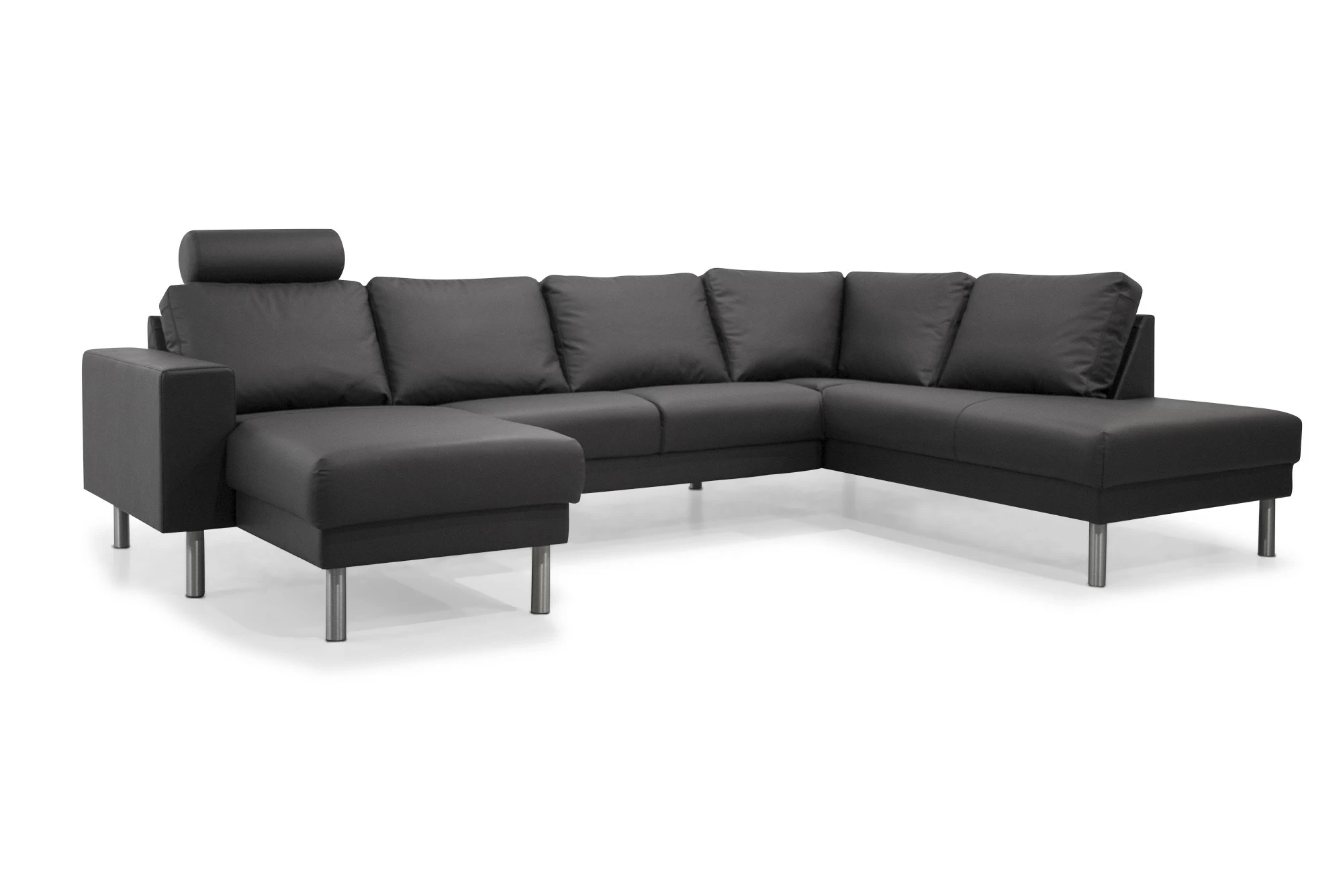 Barcelona U-formet Hjørnesofa, Sort Læder (Højrevendt)
