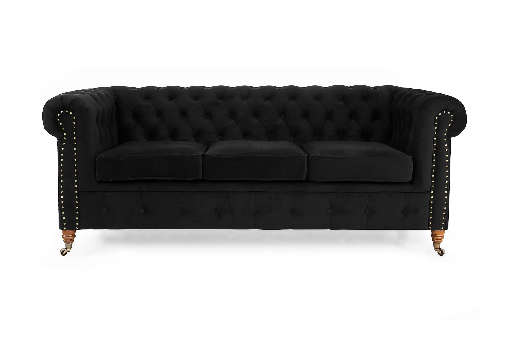 Chesterfield Deluxe 3 Pers. Sofa, Sort Velour