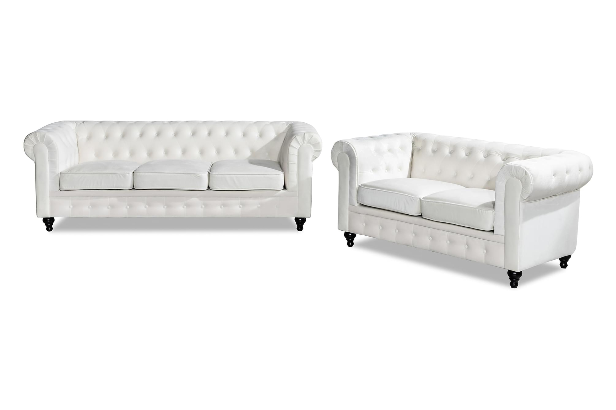 Chesterfield Lyx Sofagruppe (2 Pers. + 3 Pers. Sofa), Hvid Velour