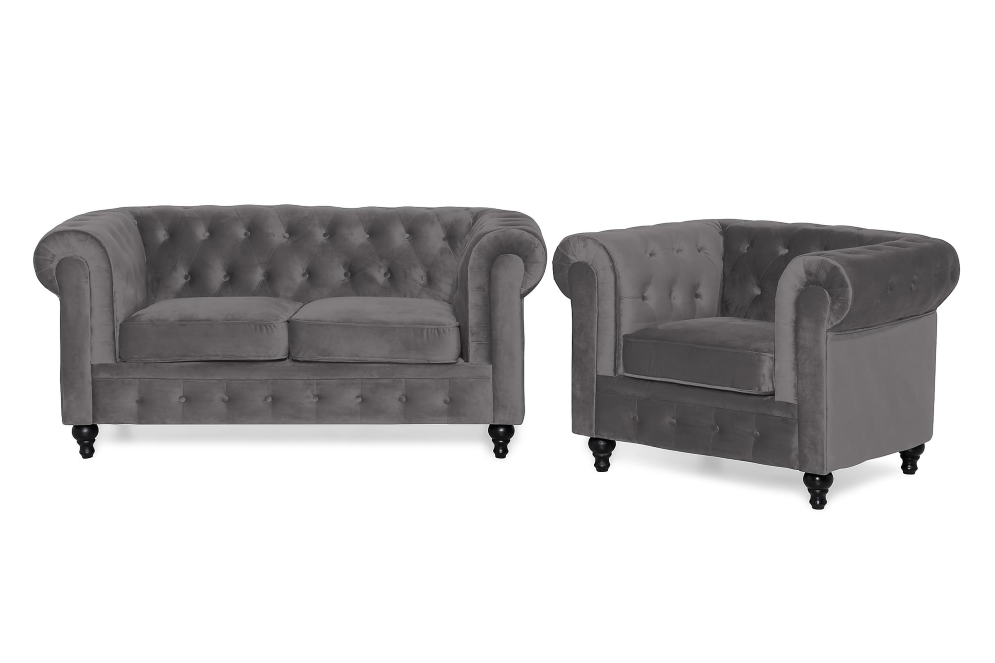 Chesterfield Lyx Sofagruppe (2 Pers. Sofa Og Lænestol), Grå Velour