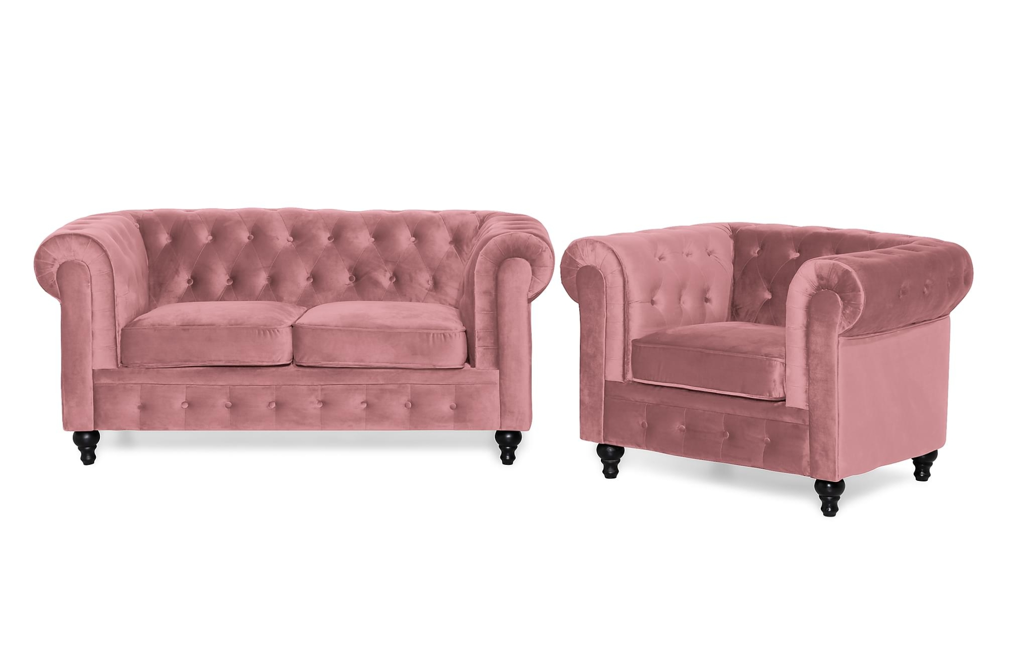 Chesterfield Lyx Sofagruppe (2 Pers. Sofa Og Lænestol), Rosa Velour