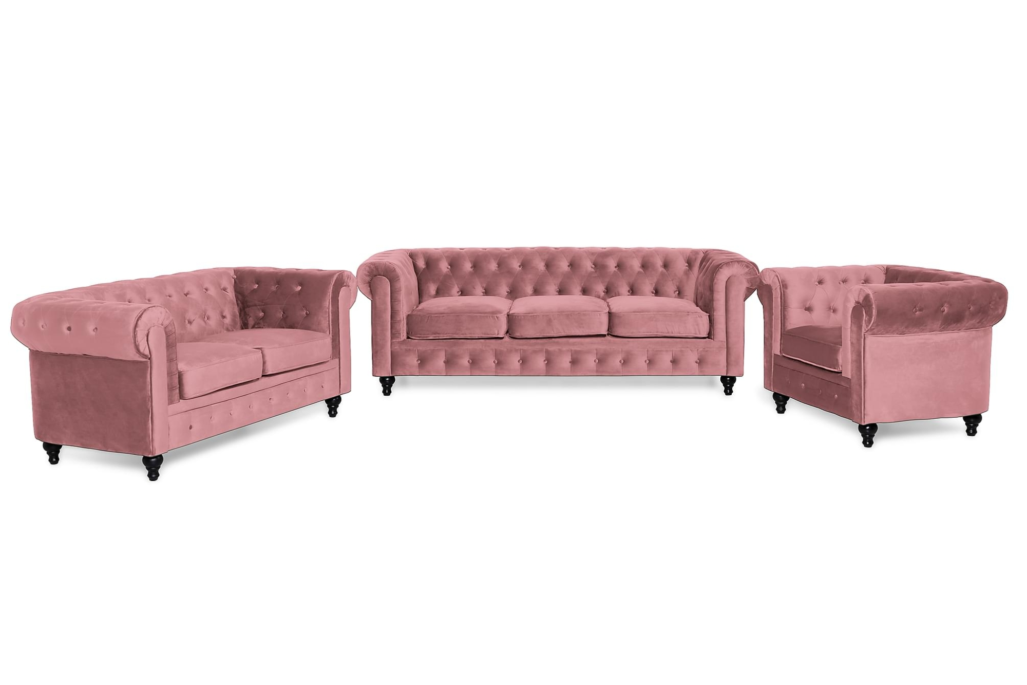 Chesterfield Lyx Sofagruppe (3+2 Pers. Sofa + Lænestol), Rosa Velour