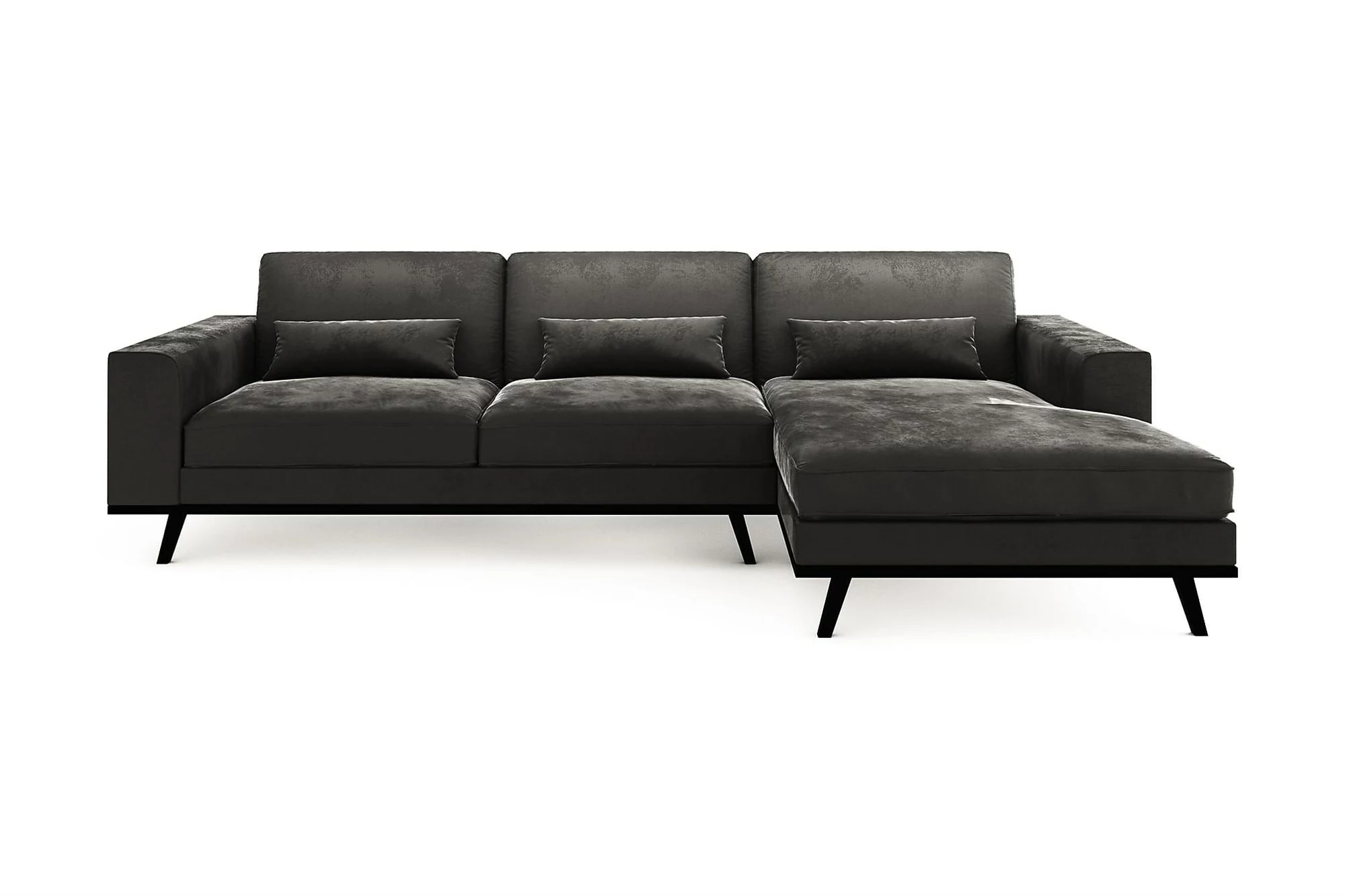 Copenhagen 3 Pers. Sofa M. Chaiselong, Grå Velour (Højrevendt)