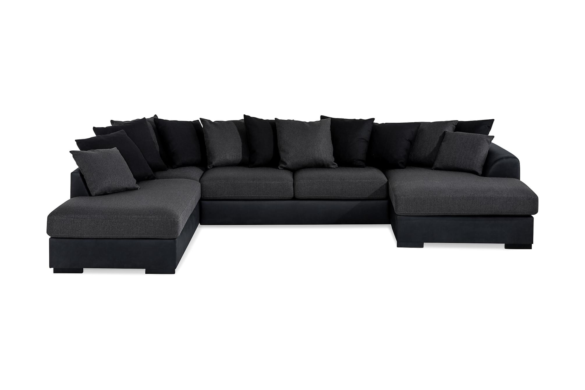 Cuba U-sofa M. Chaiselong Inkl. Løse Puder, Sort/grå (Venstrevendt)