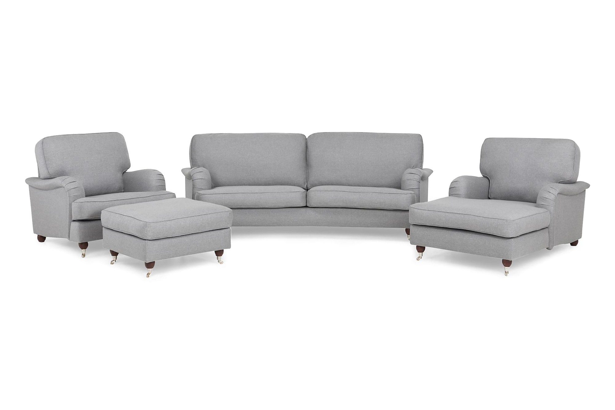 Howard Lyx Sofagruppe (3 Pers. Sofa, To Lænestole Og Puf), Lysegrå