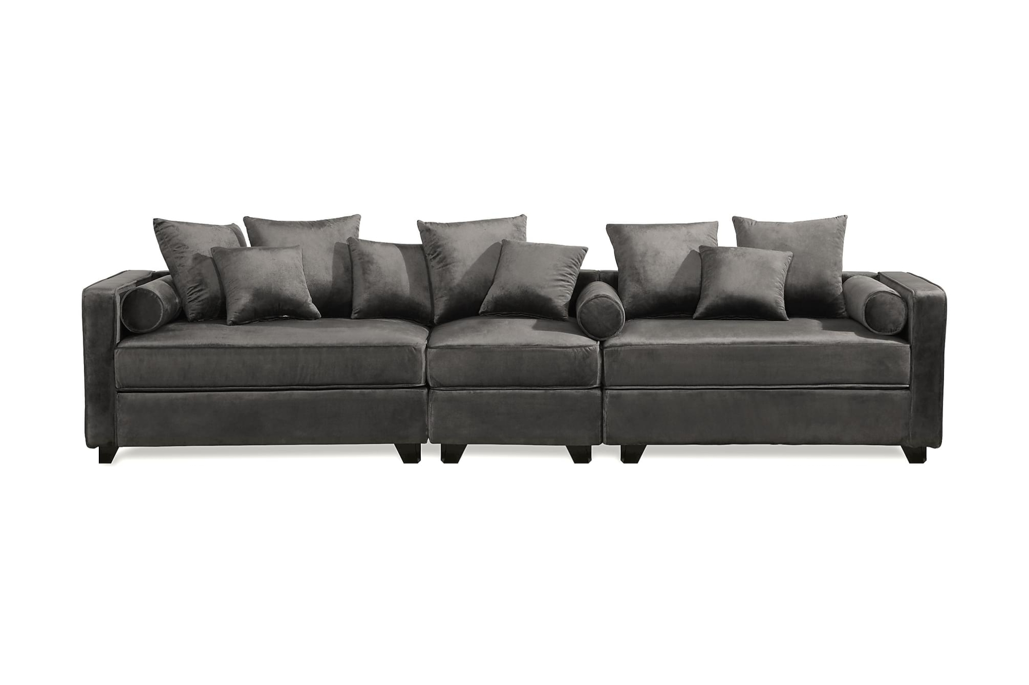 Livly er en veloursofa, som prydes af mange puder og har et stilrent udseende, der passer både dig og din indretningsstil. Takket være det bløde sæde, vil du få mange afslappende stunder foran fjernsynet i dit nye yndlings møbel. Øvrige mål & detaljer Bre