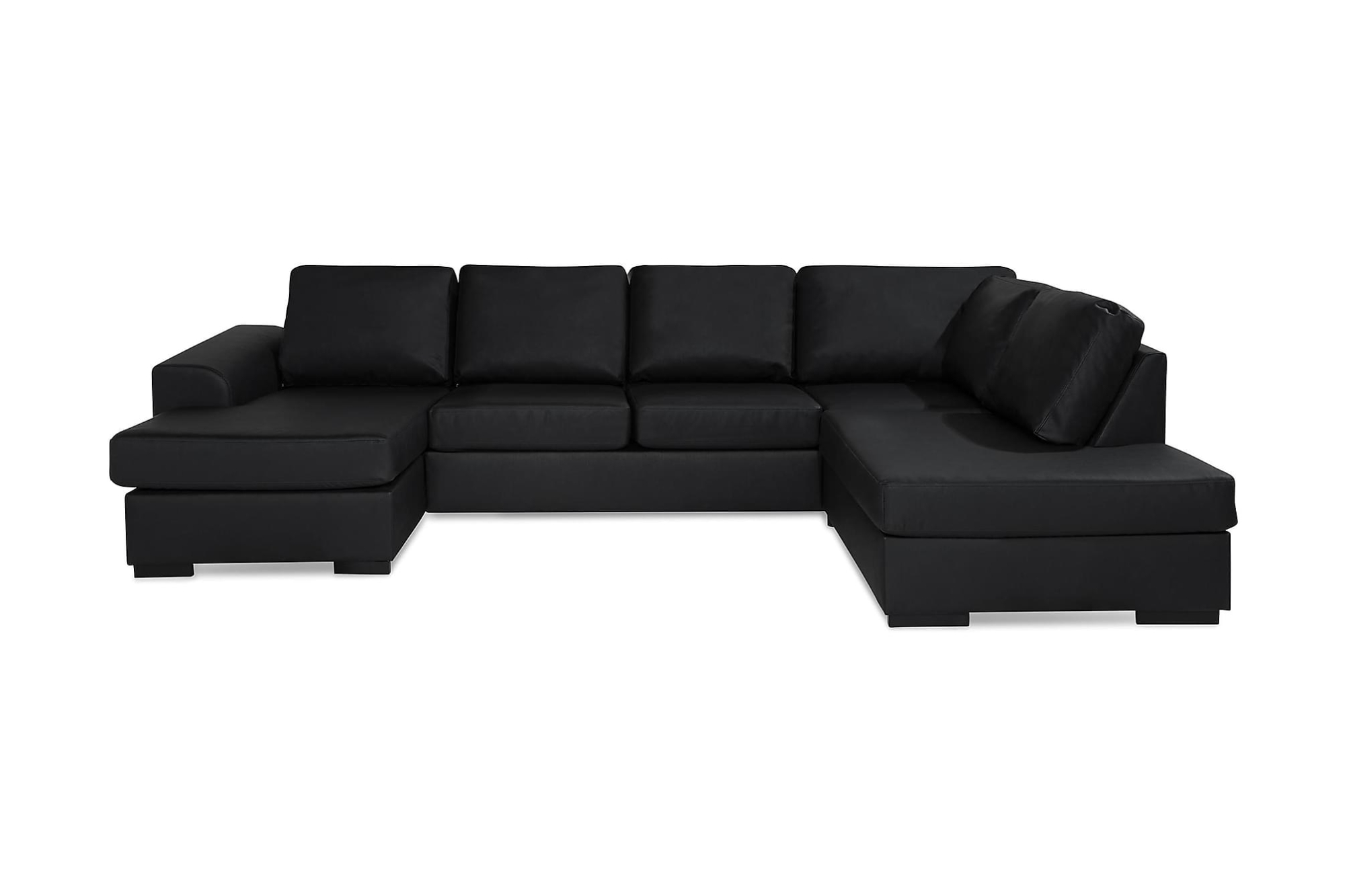 Ocean U-sofa M. Chaiselong, Sort Kunstlæder (Højrevendt)